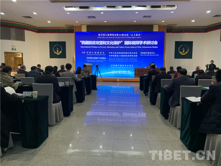中國西藏網(wǎng)訊 3月9日,聯(lián)合國人權(quán)理事會第46屆會議“西藏脫貧攻堅和文化保護”云上邊會采用線上線下結(jié)合方式舉行。線下主會場設(shè)在位于北京的中國藏學(xué)研究中心。來自境內(nèi)外有關(guān)減貧和文化保護領(lǐng)域的專家學(xué)者參加了研討。