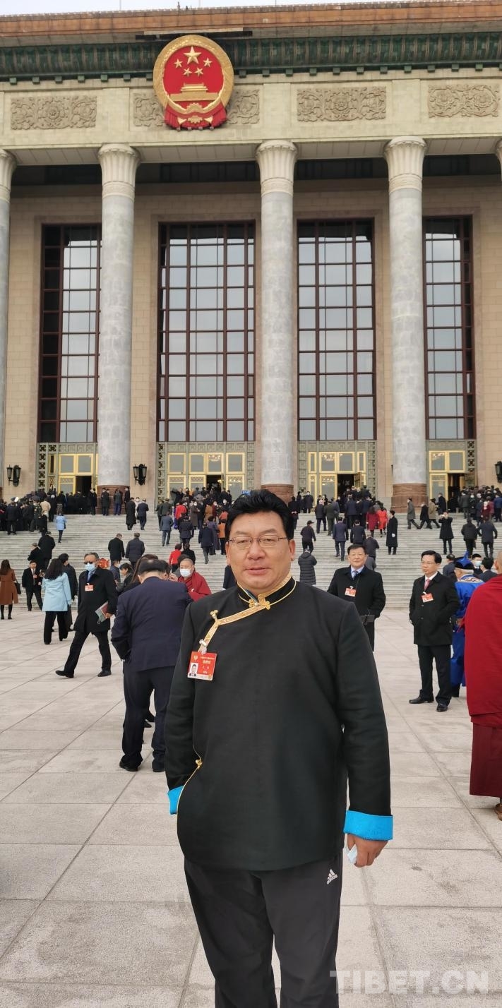 圖為全國政協(xié)委員扎西在人民大會堂前