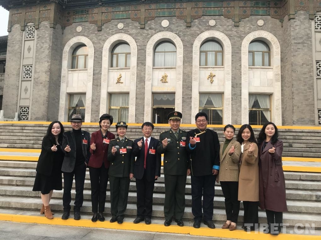 圖為扎西委員和西藏自治區(qū)代表委員們一同步入會場