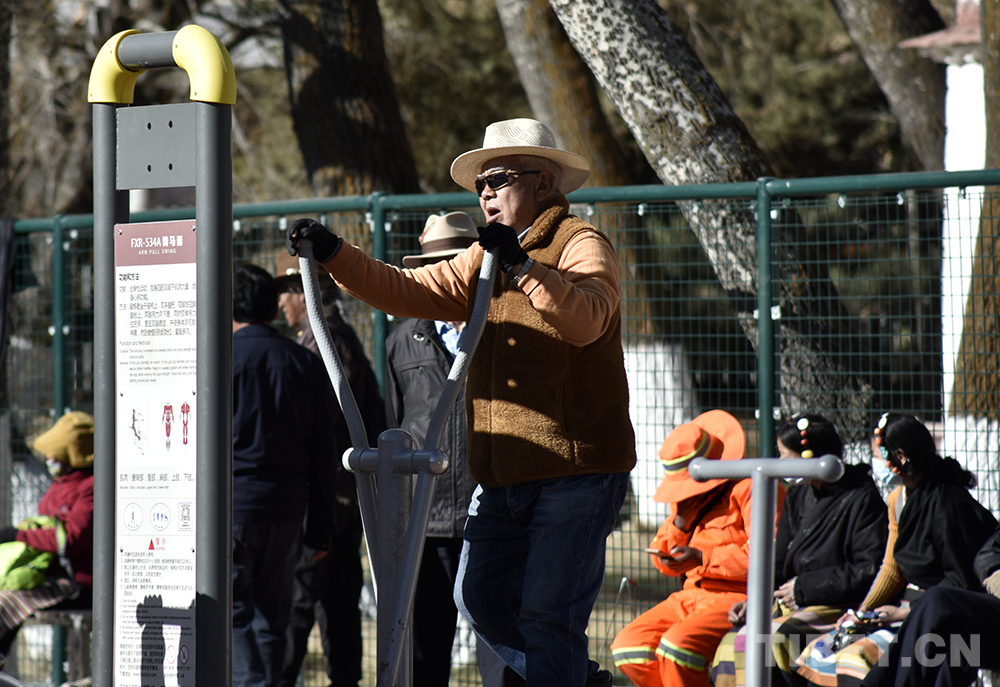 中國西藏網(wǎng)訊 “一二三四五六七八……”戴著便攜式擴(kuò)音器,一位老大爺照常在宗角祿康公園健身場帶領(lǐng)大家健身鍛煉。