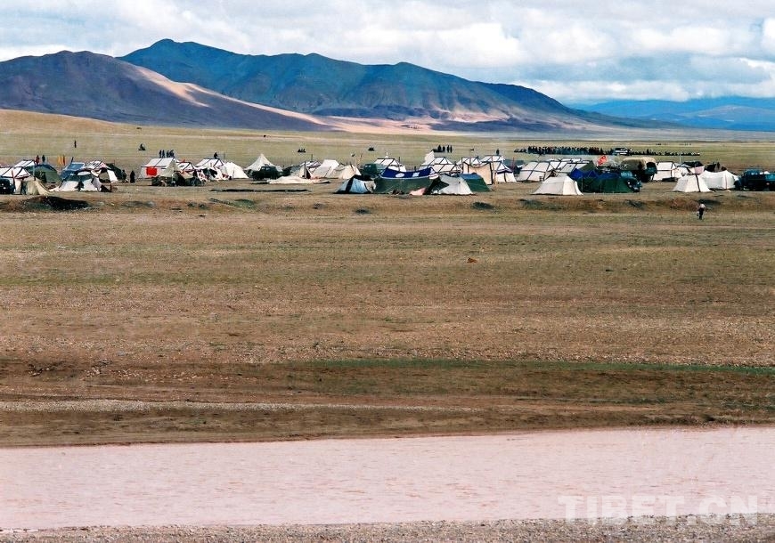 圖為在文部辦事處(現(xiàn)改為尼瑪縣)的布藏河畔舉行賽馬會(huì)前,城鎮(zhèn)人家正在搭建各自的帳篷(唐召明1987年攝)