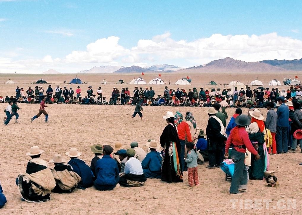 圖為在文部辦事處(現(xiàn)改為尼瑪縣)賽馬會(huì)上,所舉行的長跑比賽(唐召明1987年攝)