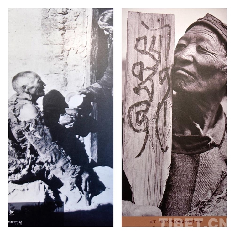 圖為拼圖照片,左圖為桑登求乞,右圖為桑登分到土地 翻拍自西藏百萬農(nóng)奴解放紀(jì)念館