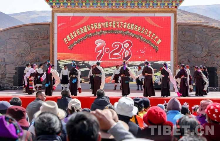 中國西藏網(wǎng)訊 在“3·28”西藏百萬農(nóng)奴解放紀念日即將到來之際,西藏自治區(qū)昌都市芒康縣在縣弦子廣場舉辦慶祝西藏和平解放70周年暨西藏百萬農(nóng)奴解放紀念日文藝匯演活動。