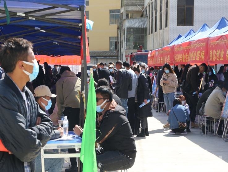 圖為山南市“春風行動”暨待業(yè)大學生、城鎮(zhèn)失業(yè)人員專場招聘會現(xiàn)場。山南市人社局 供圖
