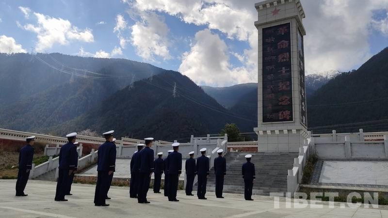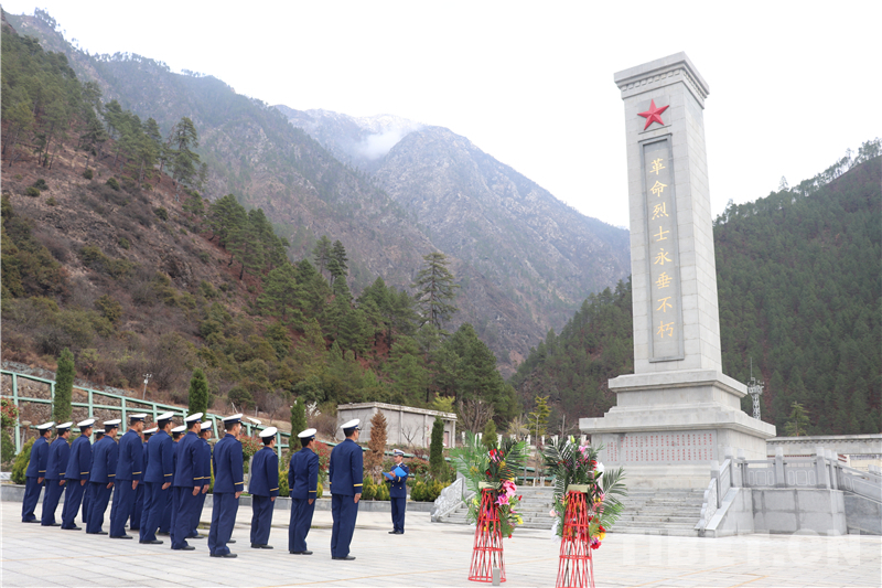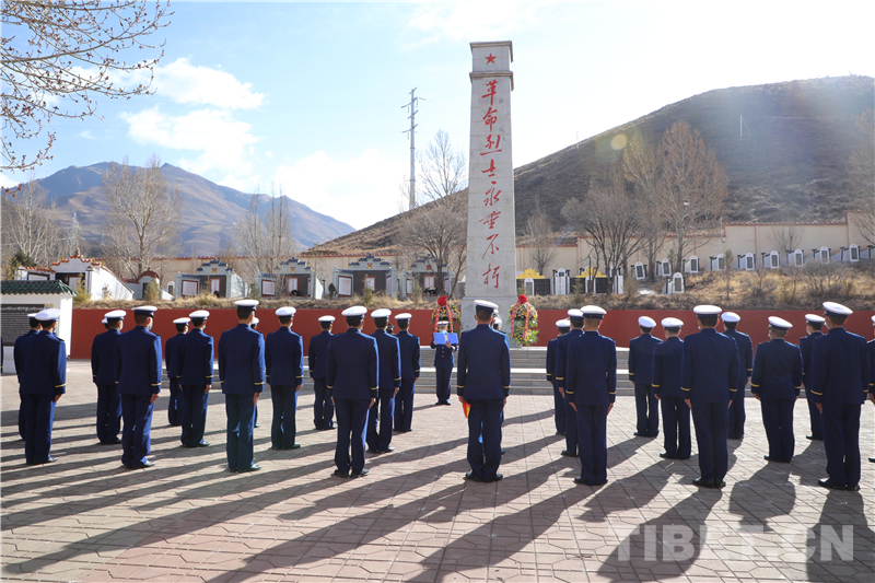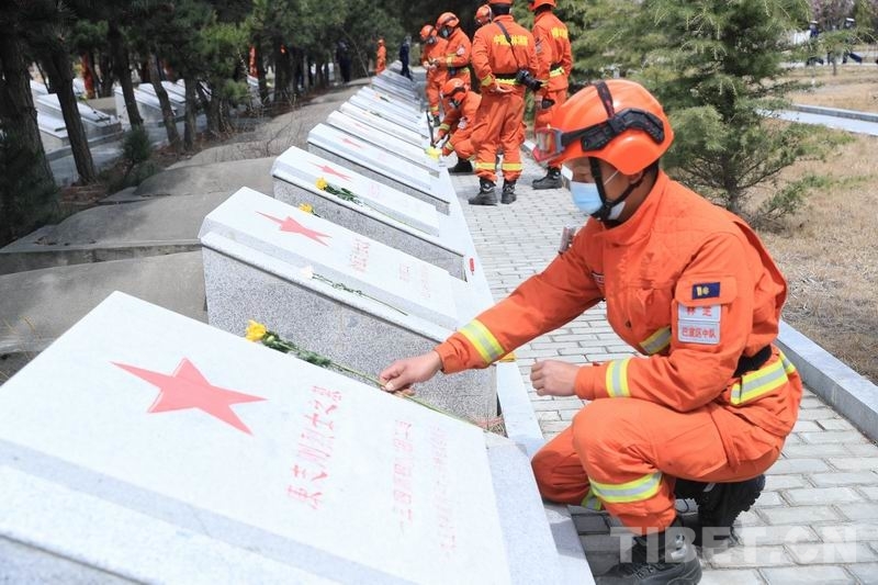 圖為林芝市森林消防支隊(duì)指戰(zhàn)員向烈士敬獻(xiàn)鮮花
