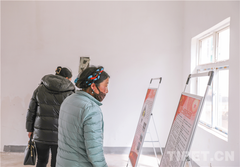圖為祭掃群眾觀看西藏昌都市芒康縣烈士陵園內(nèi)設(shè)置的展板 攝影:蔡生萬