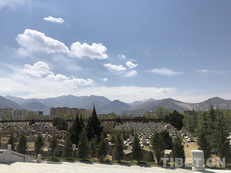一到陵園,大門口一幅“為有犧牲多壯志、敢教日月?lián)Q新天”的對(duì)聯(lián),也讓我們此次祭奠活動(dòng)突然有了一種特別的精神支撐,我感覺這句話放在西藏這個(gè)地方最合適,但暫時(shí)說不出為什么。我們登記以后,緩步走進(jìn)陵園。整個(gè)陵園正前方一大片寬闊的廣場(chǎng),題有“革命烈士永垂不朽”漢藏兩種文字的紀(jì)念碑,默默地矗立在廣場(chǎng)中央,碑的左右兩邊各立著一面一人高的國旗和黨旗?;◢徥伾木薮蠹o(jì)念碑和肅穆的廣場(chǎng),映襯著鮮艷的國旗和黨旗,背后是圍繞著墨綠松柏和剛剛發(fā)芽唐柳的烈士墓地,更遠(yuǎn)處是拉薩河谷的壯闊群山和高原湛藍(lán)的天空,風(fēng)從這之間吹過,似乎在訴說著這片土地上發(fā)生的故事和長眠此處烈士們經(jīng)歷過的波瀾壯闊。我們?nèi)〕龌ㄊ凸_(dá),獻(xiàn)至紀(jì)念碑,并肅穆感懷革命烈士的英勇壯烈和無私奉獻(xiàn),最后用三鞠躬表達(dá)我們對(duì)先烈的緬懷和致敬。