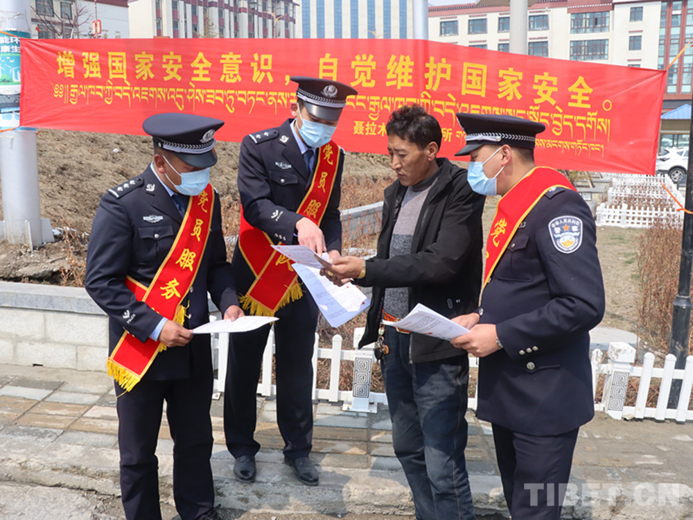 在第6個(gè)“全民國(guó)家安全教育日”來臨之際,西藏日喀則邊境管理支隊(duì)各級(jí)充分結(jié)合“邊防政策法規(guī)宣傳月”和“百萬(wàn)警進(jìn)千萬(wàn)家”活動(dòng),組織民警成立普法宣講小分隊(duì),以邊境轄區(qū)為主戰(zhàn)場(chǎng),以《國(guó)家安全法》《反分裂國(guó)家法》《保守國(guó)家秘密法》《反間諜法》等為重點(diǎn)內(nèi)容,深入邊境轄區(qū)村莊、學(xué)校、寺廟、商店、田間牧場(chǎng),通過播放國(guó)家安全公益短片、廣播,發(fā)放《國(guó)家安全法》口袋書和宣傳單,懸掛橫幅,張貼海報(bào),設(shè)置展板,現(xiàn)場(chǎng)答疑等方式,教育引導(dǎo)轄區(qū)群眾牢固樹立“國(guó)家利益高于一切,國(guó)家安全人人有責(zé)”意識(shí),自覺主動(dòng)參與到維護(hù)國(guó)家安全行動(dòng)中來。