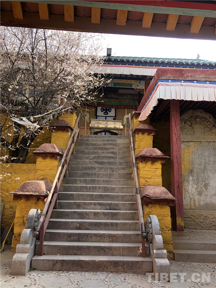 這段碑文充分表明了,清朝中央政權(quán)對西藏地方的守護和管理。也表現(xiàn)出建廟立碑者大將軍福康安的胸襟和氣魄。在看碑文時,腦子里浮現(xiàn)出那場發(fā)生在18世紀的戰(zhàn)爭,清朝大將軍??蛋猜暑I(lǐng)滿漢蒙藏各民族組成的騎兵,刀劍相錯、血雨腥風(fēng)的畫面。一抬頭,廟中院子里卻靜謐異常,只有那株開滿花的桃樹,散落幾片花瓣,似乎在隨我一同追憶和祭奠這段歷史中的高光時刻。這段歷史中充滿了各種有益于我們這個時代的精神內(nèi)核,不畏艱險保家衛(wèi)國、各民族兄弟同仇敵愾、對共同民族英雄的認可等,這些都凝聚在這個安靜的上午,這座名字很獨特的小廟之中。抬起頭,從關(guān)帝廟的正門,往外望去,整個拉薩城充滿活力和現(xiàn)代氣息地展現(xiàn)在眼前,這座寺廟的靜謐似乎正像廟中供奉的兩位英雄一樣,默默地守護著這座城市的煙火氣息。