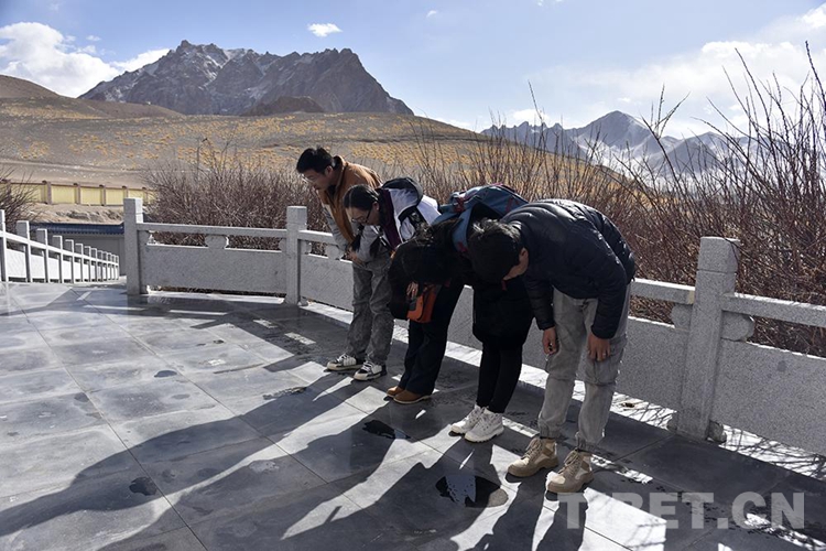 圖為中國西藏網(wǎng)阿里采訪組一行,在阿里地區(qū)獅泉河烈士陵園向長眠于此的烈士們鞠躬致敬