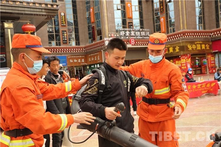 圖為昌都市民體驗操作滅火裝備