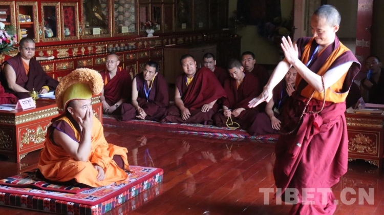 圖為格魯派辯經(jīng)考試現(xiàn)場(chǎng)