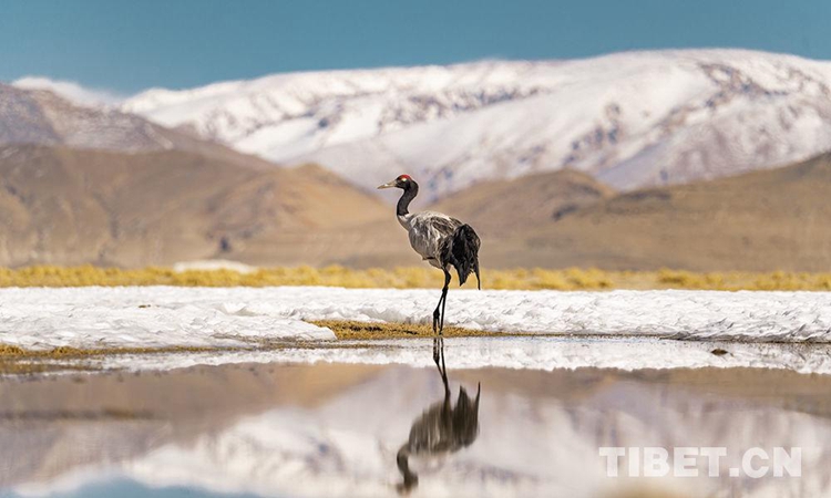 圖為得益于西藏生態(tài)環(huán)境越來越好,黑頸鶴無憂無慮地徜徉在羌塘草原上,和諧而優(yōu)雅 攝影:趙耀