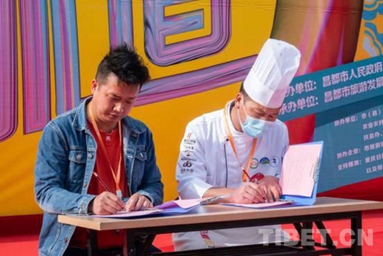 此外,活動現(xiàn)場還進(jìn)行了非物質(zhì)文化遺產(chǎn)體驗(yàn)活動和產(chǎn)品展銷活動,共有32個企業(yè)參加。據(jù)悉,截止活動結(jié)束,現(xiàn)場累計(jì)交易額5萬余元。重慶文旅館同參賽人員進(jìn)行現(xiàn)場簽約,這對昌都餐飲業(yè)的推廣和發(fā)展具有重要的意義。(中國西藏網(wǎng) 記者/次旦拉姆 圖片由卓卓康巴美食大賽組委會提供)