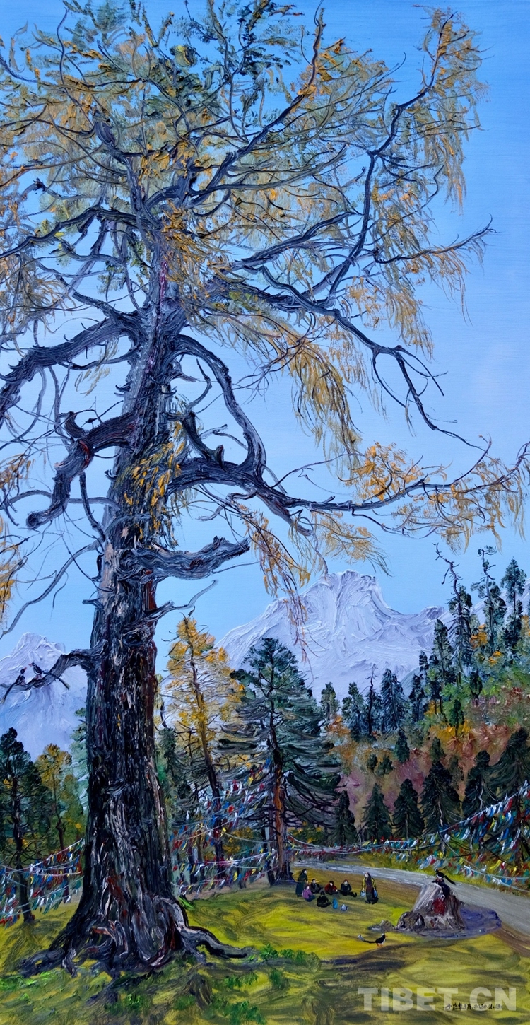 “展覽的油畫創(chuàng)作大多是在寫生現場完成的,她的藝術風格也清新生動。她以自己的寫生作品,令觀眾共享融入自然的至純大美,這是一種平易近人的審美方式?!眹乙患壝佬g師余有心評價說,子白特別善于畫樹,她的一幅幅佳作就是這些千年古樹的肖像,借審美而參悟自然生態(tài)的奧妙,帶觀眾領會高原生態(tài)文明之真諦。