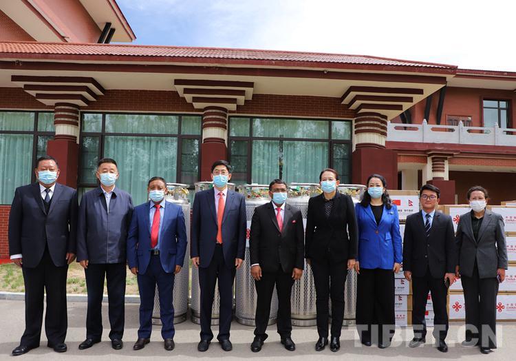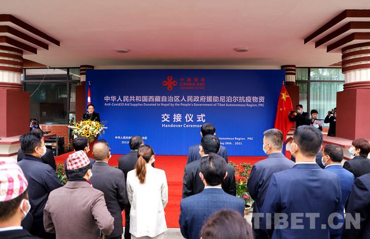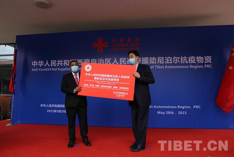 圖為5月20日舉行的中華人民共和國(guó)西藏自治區(qū)人民政府向尼泊爾政府緊急援助抗擊新冠肺炎疫情物資交接儀式 攝影:賈華加