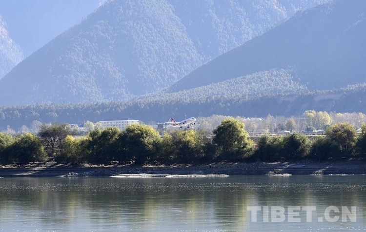 圖為2020年11月拍攝的一架飛機(jī)從西藏自治區(qū)林芝市米林機(jī)場起飛 攝影:王媛媛