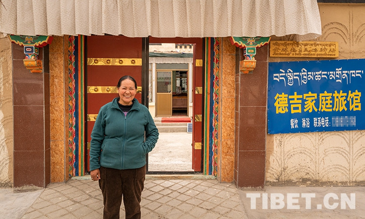 “以前是土坯房,上廁所、洗澡不方便,許多游客看了住宿條件后就走了?,F(xiàn)在新修的房子干凈明亮,廁所、廚房都有兩個(gè),游客們?cè)敢鈦砹恕!苯鹬榈录前⒗锏貐^(qū)扎達(dá)縣托林鎮(zhèn)扎布讓村村民,家在扎達(dá)土林腳下,游客紛至沓來,她在2006年開起了家庭旅館。
