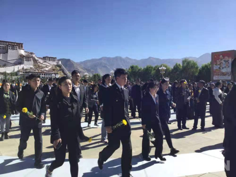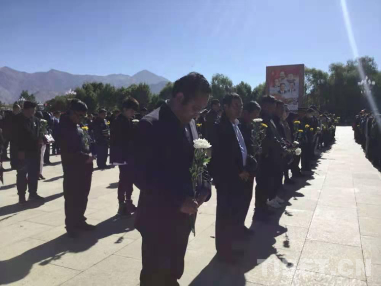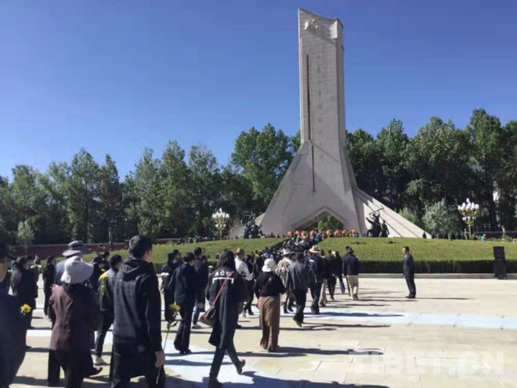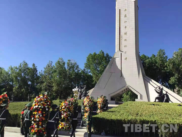 中共西藏自治區(qū)委員會(huì)、西藏自治區(qū)人大常委會(huì)、西藏自治區(qū)人民政府及各界群眾等分別敬獻(xiàn)的9個(gè)大型花籃一字排開(kāi),花籃紅色緞帶上書寫“革命先烈永垂不朽”8個(gè)金色大字。