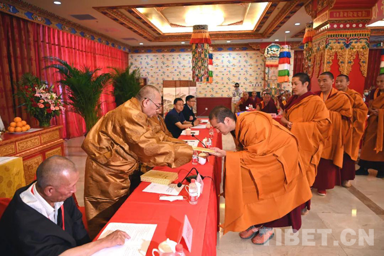 中國佛教協(xié)會副會長、藏傳佛教學(xué)銜工作指導(dǎo)委員會副主任珠康?土登克珠活佛在致辭中表示,“拓然巴”高級學(xué)銜是藏傳佛教的最高學(xué)位,是對大家宗教造詣的高度肯定,更意味著藏傳佛教健康傳承的光榮使命,蘊(yùn)含著廣大信教群眾的深切期許。希望高級學(xué)銜獲得者深入學(xué)習(xí)貫徹習(xí)近平新時代中國特色社會主義思想,切實踐行“政治上靠得住、宗教上有造詣、品德上能服眾、關(guān)鍵時起作用”的標(biāo)準(zhǔn),自覺堅持藏傳佛教中國化方向,積極推進(jìn)宗教與社會主義社會相適應(yīng),做新時代愛國愛教的引領(lǐng)者,為實現(xiàn)中華民族偉大復(fù)興的中國夢作出宗教界應(yīng)有的貢獻(xiàn)。