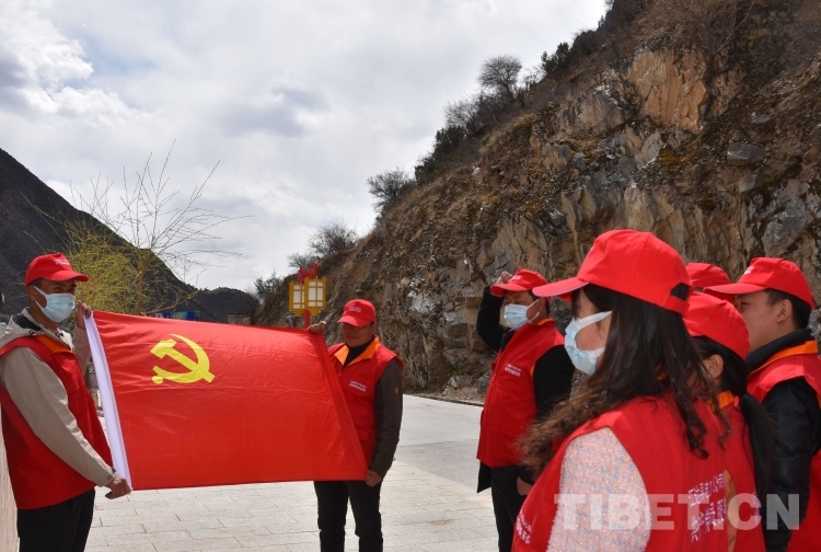 圖為國(guó)網(wǎng)江達(dá)縣供電公司在西藏解放第一村重溫入黨誓詞