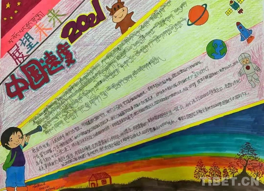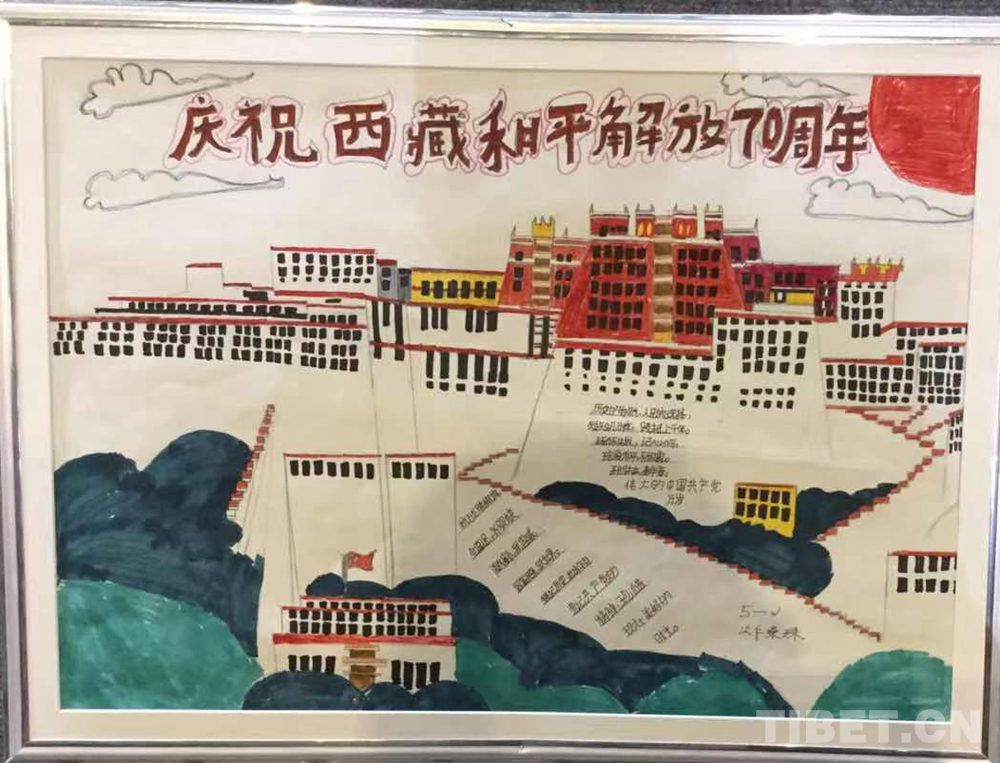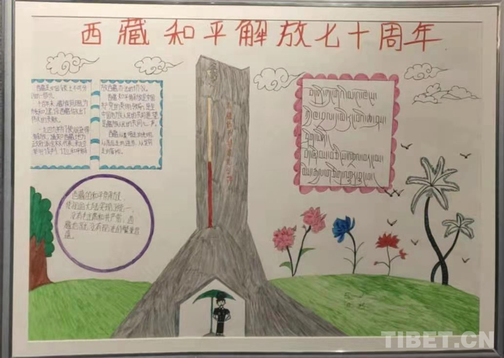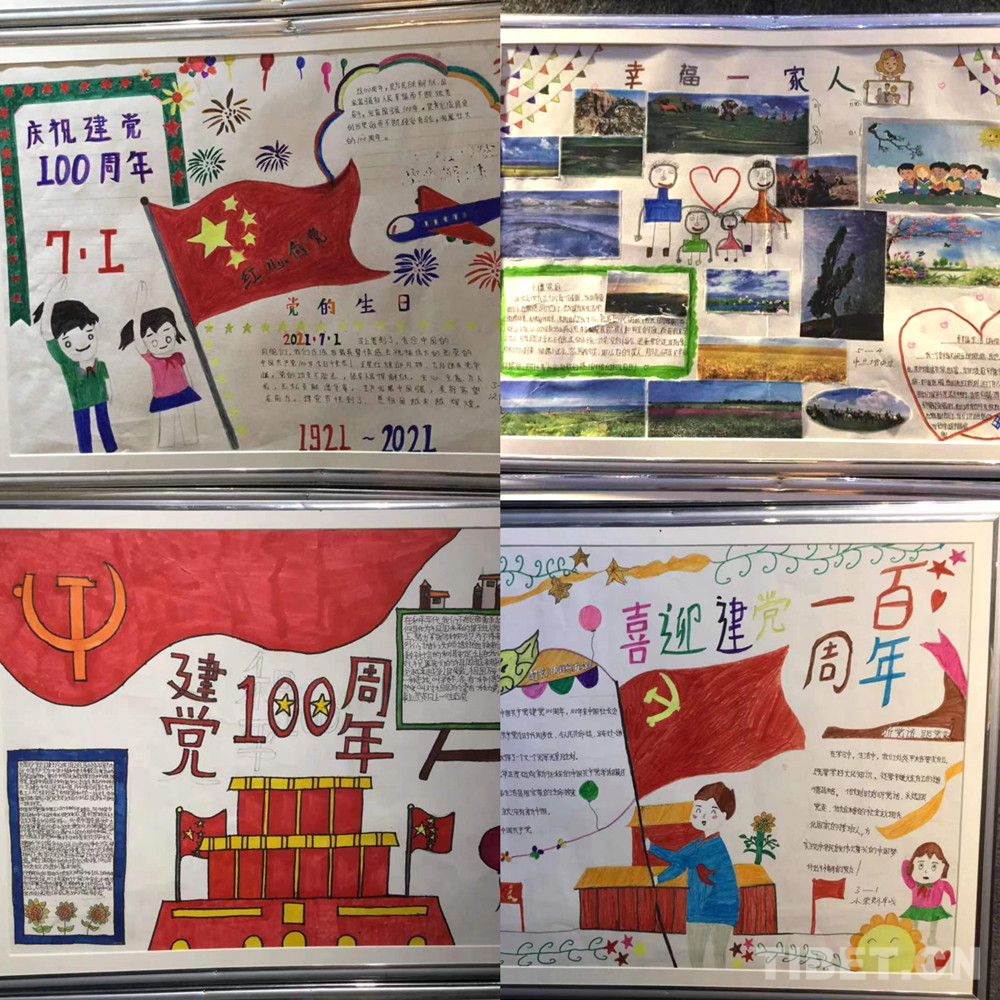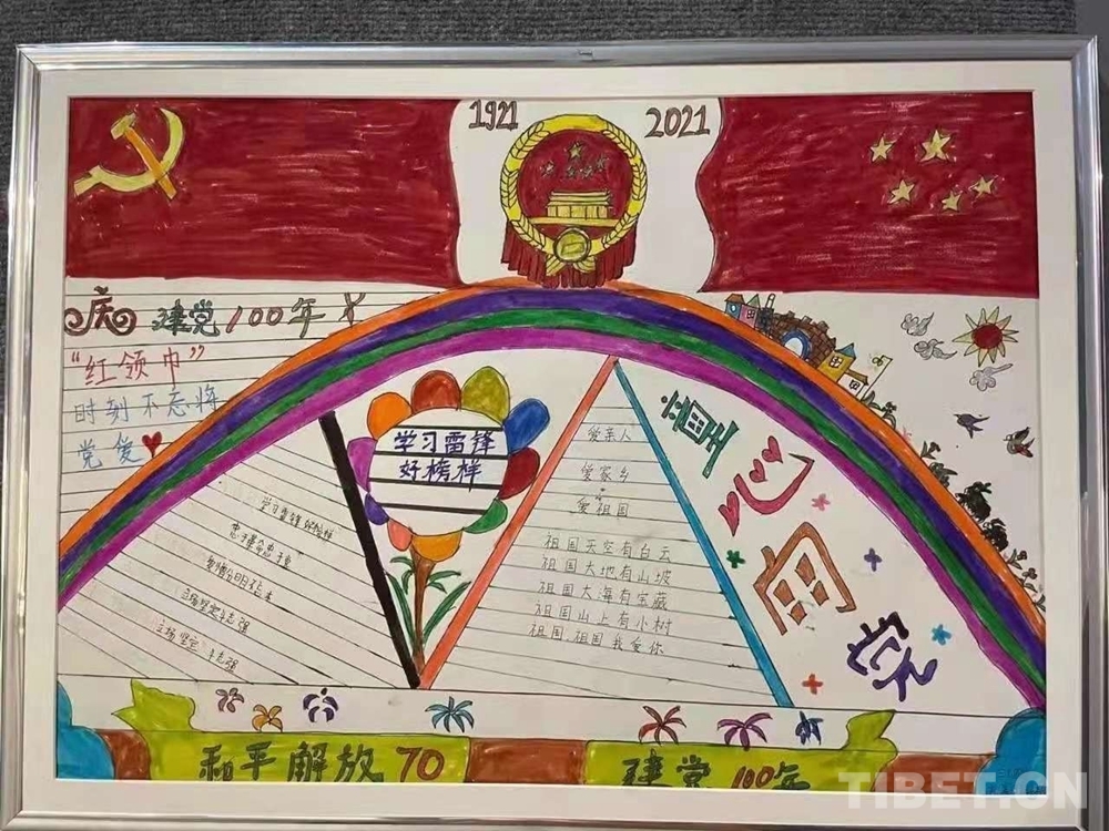 此次展覽是在慶祝中國(guó)共產(chǎn)黨成立100周年、西藏和平解放70周年之際,舉辦的一次展示西藏少年精神面貌的少兒手抄報(bào)專題展。展覽從今年三月份開始策劃,共展出240幅堆龍德慶區(qū)小學(xué)生手抄報(bào)。