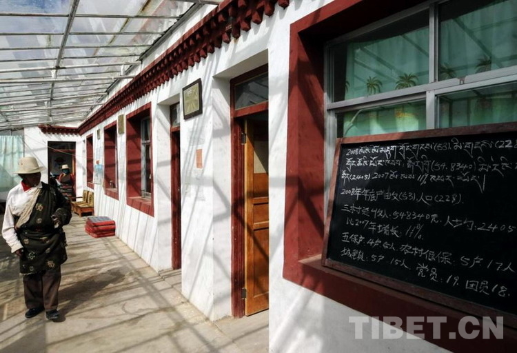走進村委會的玻璃式采暖房,首先映入眼簾的是申扎縣委頒發(fā)的“安全文明村”金色牌匾,以及藏漢文兩種文字的學(xué)習墻報。