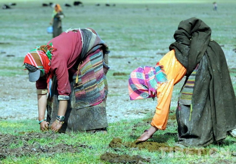 申扎縣申扎鎮(zhèn)三村成立了專業(yè)合作經(jīng)濟組織,大家分工明確,各司其職。這是分工撿拾攤曬牛糞燃料的藏族婦女(唐召明2009年攝)