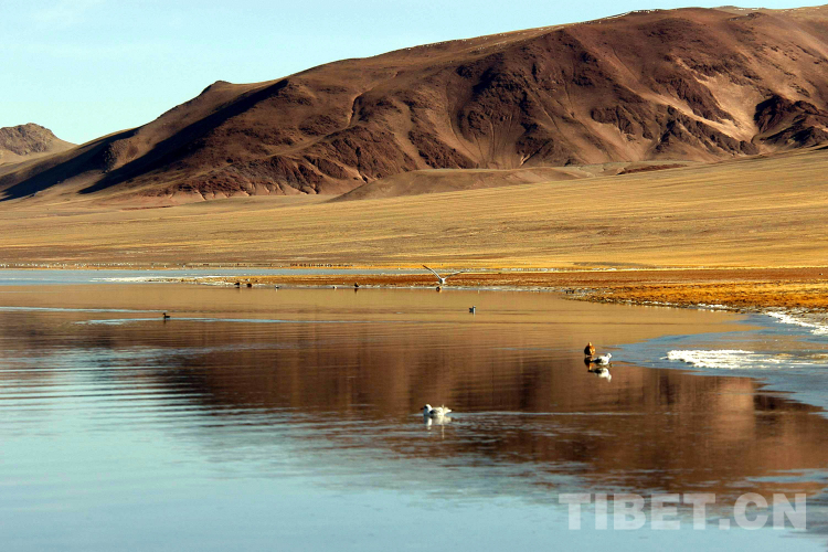 盡管是盛夏時節(jié),風過之處仍感覺到肌膚生涼。色林錯湖水中有許多飛禽。我幻想,如果把這個湖搬到盛夏的北京,該讓多少人欣喜若狂??!