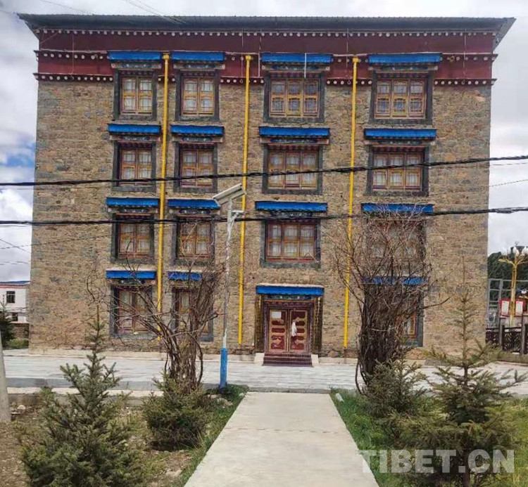駛?cè)刖G意盎然的嘉黎縣,穿過繁華有序的人民東路,眼前映入飄著五星紅旗的大門,里面矗立著兩棟大樓,一棟為現(xiàn)代化大樓,另一棟為傳統(tǒng)藏式建筑。