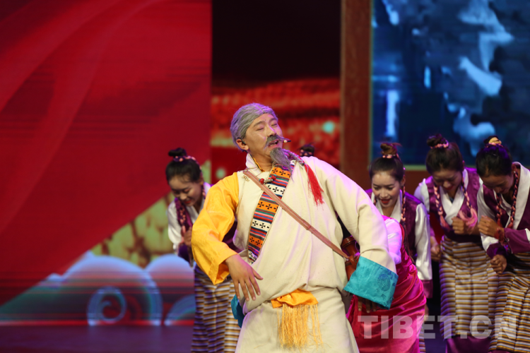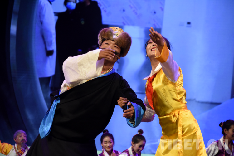 圖為正在演出組歌《共產(chǎn)來了苦變甜了》《我愛金子般的家鄉(xiāng)》《洗衣歌》《西藏人民齊歡暢》攝影:次旦拉姆
