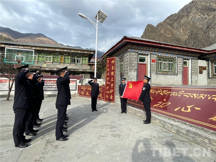 圖為林芝市金東邊境派出所民警正在參觀國門講習(xí)所展廳