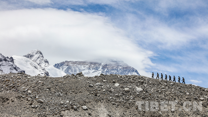 圖為珠峰邊境派出所民警在山脈巡邏