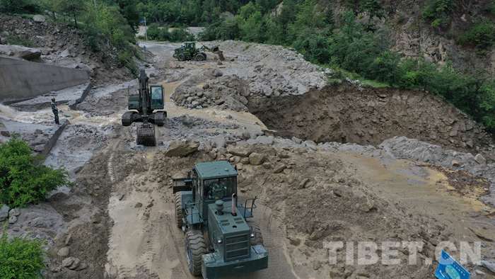 圖為該支隊(duì)救援官兵正在對(duì)川藏線怒江溝泥石流災(zāi)害進(jìn)行清理