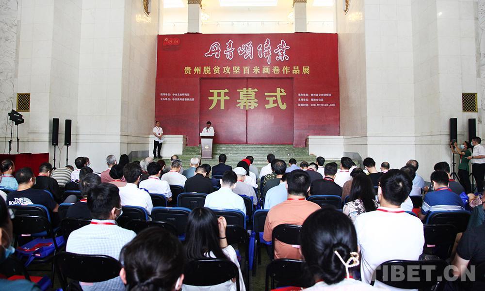 中國西藏網(wǎng)訊 7月16日,由中央文史研究館指導(dǎo)、貴州省委統(tǒng)戰(zhàn)部主辦,貴州省文史研究館承辦的《丹青頌偉業(yè)——貴州“脫貧攻堅”百米畫卷》主題展覽在北京民族文化宮隆重開幕。