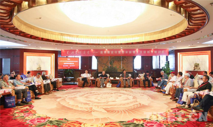 開幕當天,百米畫卷主創(chuàng)人員以及多位專家學(xué)者還就《丹青頌偉業(yè)——貴州“脫貧攻堅”百米畫卷》作品展進行主題創(chuàng)作研討。