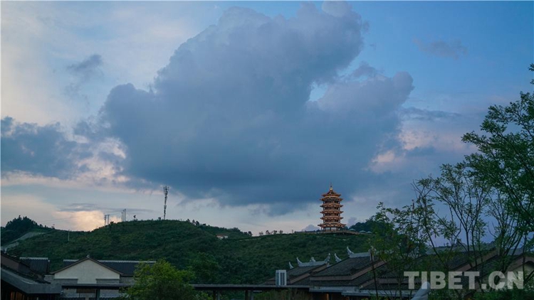 圖為夜色將至,遠(yuǎn)眺三寶感恩塔 攝影:呂靜