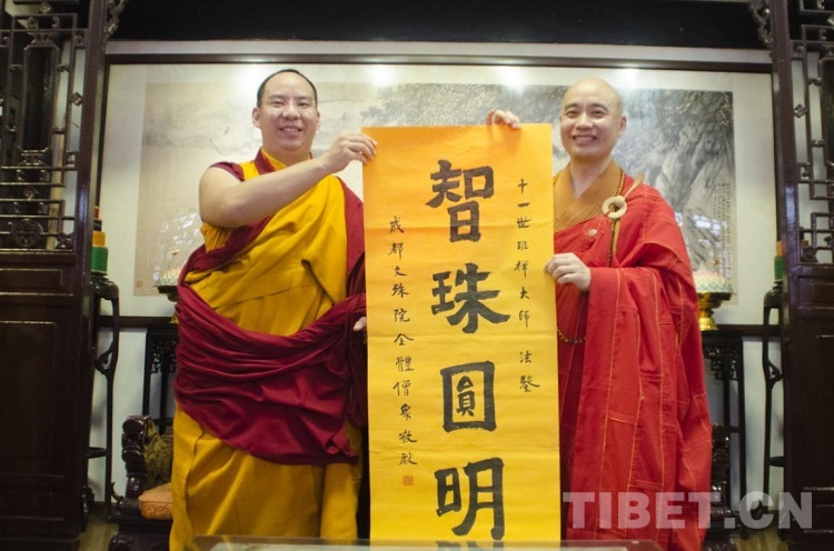 “中國佛教有三大語系,同根同源,在不同的信眾群體中形成了相對差異化的傳承方式,但是都有著共同的理念、價值、信仰,和對真理的追求、對因果的敬畏。特別是在新中國,中國佛教得到更好的傳承與發(fā)展,在新時代,我們?nèi)笳Z系交往、交流更加密切、更加頻繁,相互學(xué)習(xí),相互促進,共同推動佛教中國化方向發(fā)展,共同為祖國統(tǒng)一、民族團結(jié)、地區(qū)安寧、人民幸福作著貢獻。”班禪在文殊寺參觀時說:“中國共產(chǎn)黨重視宗教工作,對宗教的發(fā)展指明方向、提供平臺,這是佛門盛世?!?/p>