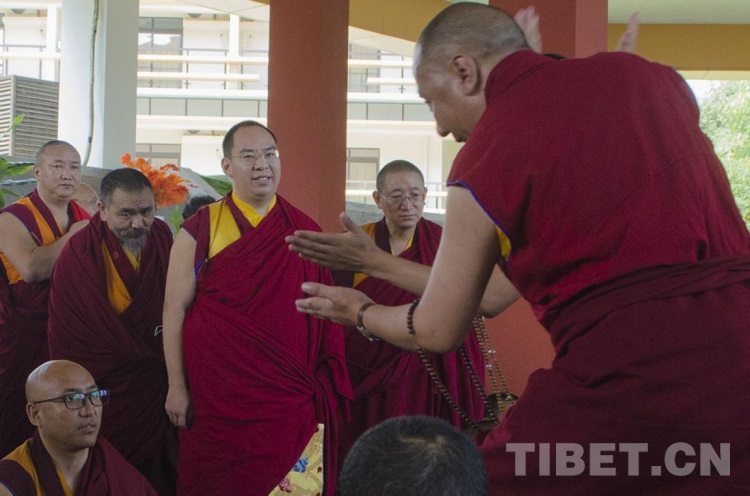圖為班禪在四川藏語佛學(xué)院觀看學(xué)員辯經(jīng) 攝影:歐帆