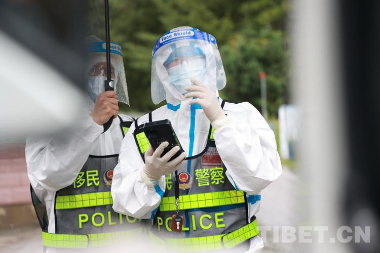 圖為西藏亞東出入境邊防檢查站民警在防控卡點開展查驗工作