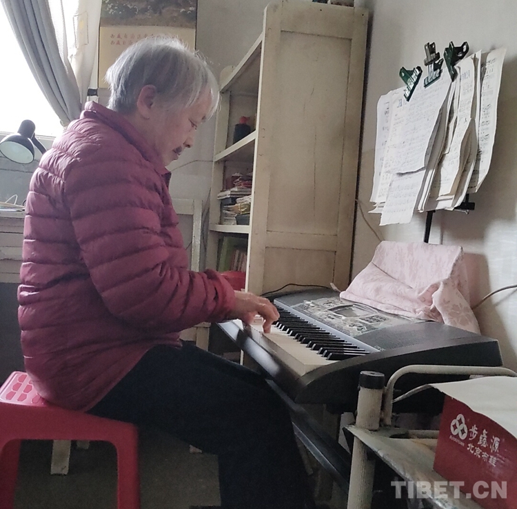 鄧親和,四川省樂山市犍為縣人,出生于1931年,十八軍52師文工隊戰(zhàn)士。1950年,鄧親和19歲,正值高三,成績優(yōu)異的她不顧家人的勸阻,毅然放棄了繼續(xù)讀書的機會,踏上了解放西藏的征途,從此在雪域高原上留下了人生最寶貴的青春足跡。初見鄧老師,她親切和藹的樣子,給我留下深刻的印象。老人雖然退休多年,但是她的生活仍然格外豐富。據(jù)老人講,她的作息時間比較規(guī)律,堅持做八段錦鍛煉身體,自己做家務,空閑時間還會看書看報、提筆練字,或是彈彈電子琴,唱唱歌等等,生活豐富多彩。此刻,我從她的身上看到了年輕時鄧親和的神態(tài)與風采。回首那段崢嶸歲月,翻雪山、過草地、穿峽谷、涉冰河……面臨高山缺氧的生命危險,趟越急流冰河的刺骨鉆心,爬冰臥雪、忍饑耐寒,遇艱險不畏其險,歷困難不以為難,樁樁件件好似一首首雋永的絢麗詩篇,常在她記憶里回蕩,令人難忘。