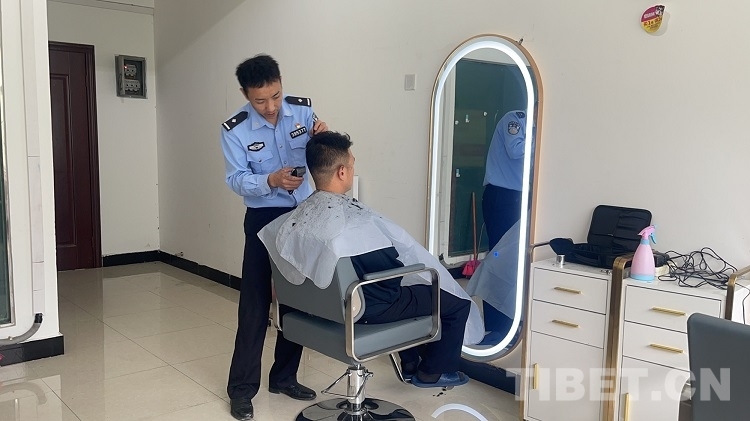 民警頓珠主動承擔起了為戰(zhàn)友們理發(fā)的工作。理發(fā)這門手藝,是頓珠自學來的。參加工作之前,他就在老家村莊和鄉(xiāng)親們相互幫忙剪頭發(fā)。參加工作后,他就利用回家探親休假的時間學習理發(fā)技術(shù)。時間久了,他的理發(fā)技術(shù)越來越成熟,手藝也越來越好。每當節(jié)假日、周末,大家在休息的時候,他的小理發(fā)室就會變得異?;鸨?,洗、剪、吹,整天都是忙忙碌碌的。漸漸地“托尼”老師——頓珠的名聲傳遍了樟木鎮(zhèn),在鎮(zhèn)里工作的建設(shè)工人也常常會慕名前來。