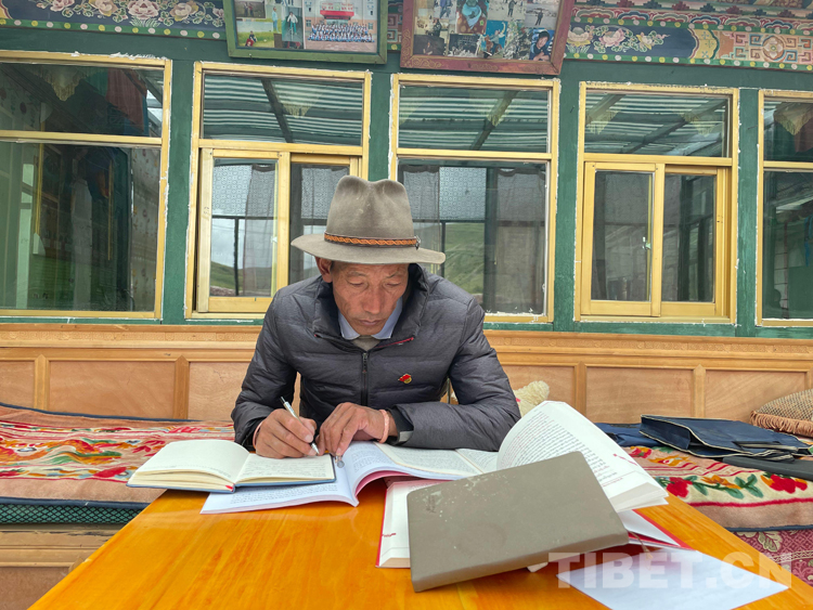小到家庭糾紛,大到村民大會(huì),都會(huì)有索朗頓珠宣講普及法律法規(guī)和惠民政策的影子,因?yàn)樽鳛橐幻伯a(chǎn)黨員,他認(rèn)為有責(zé)任和義務(wù)向群眾宣傳現(xiàn)在的富足生活都要?dú)w功于中國(guó)共產(chǎn)黨。