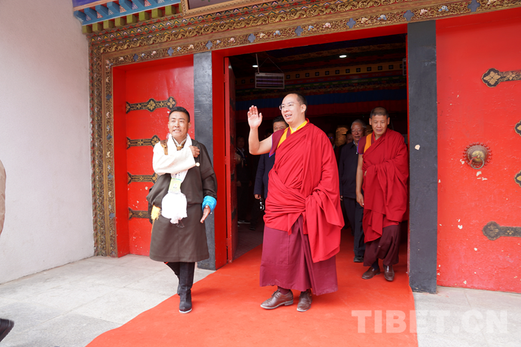 法王殿又稱桑培羅布林寺,為白居寺的前身。班禪來到法王殿后,專注觀察壁畫,神情肅穆,并特意提醒隨行人員要注意與壁畫保持距離、注意保護(hù)壁畫。