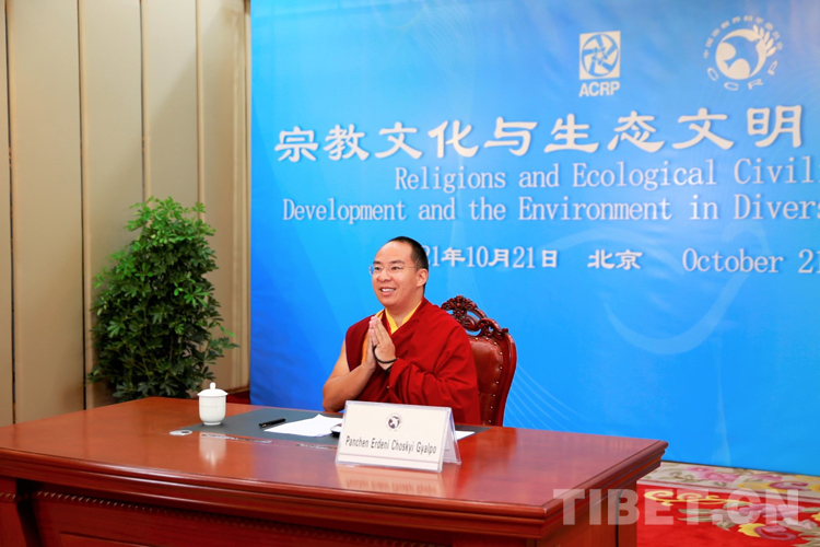 中國西藏網(wǎng)訊 10月21日,中國宗教界和平委員會(以下簡稱“中宗和”)組織召開亞洲宗教和平會議第九屆大會環(huán)境與發(fā)展分論壇暨“宗教文化與生態(tài)文明”國際研討會視頻會議?!爸凶诤汀蔽瘑T、中國佛教協(xié)會副會長班禪額爾德尼?確吉杰布在西藏自治區(qū)日喀則市以視頻連線方式參會,并作《共建人與自然生命共同體 建設清潔美麗世界》主題發(fā)言。