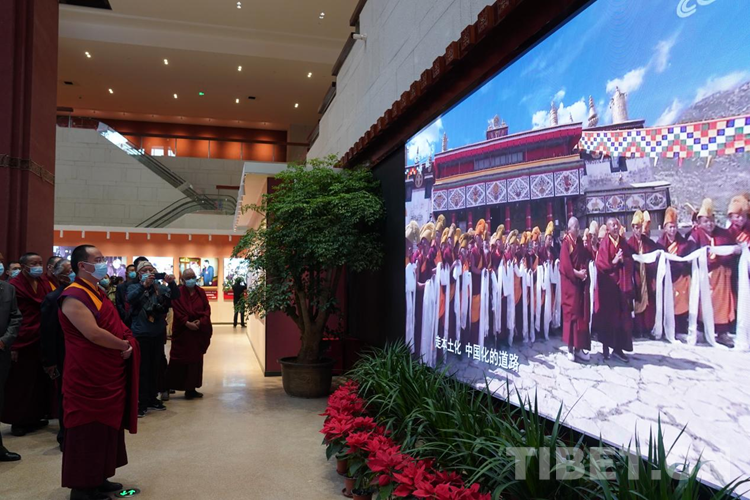 圖為班禪在西藏拉薩參觀(guān)西藏和平解放70周年成就展 攝影:王淑