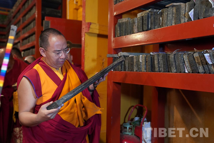 圖為班禪在納塘寺參觀(guān)印版 攝影:王淑
