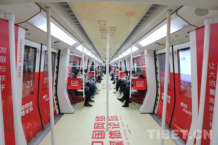 中國西藏網(wǎng)訊 2021中國網(wǎng)絡(luò)媒體論壇將于11月24日至25日在廣州舉辦。論壇召開前夕,廣州地鐵在八號線推出了論壇主題列車。該主題列車以慶祝建黨100周年貫穿全年的紅色為主基調(diào),將本屆論壇5個平行論壇的主題“傳播:塑造價值”“創(chuàng)新:技術(shù)賦能”“發(fā)展:行穩(wěn)致遠”“責任:共治共享”以及“大灣區(qū):一網(wǎng)相聯(lián)”融入車廂設(shè)計。主題列車將上線運營一個月,感興趣的乘客可前往乘坐參觀。