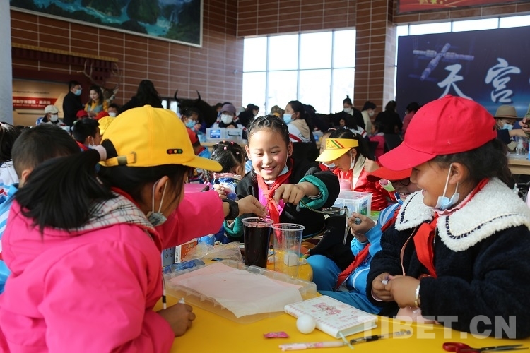 西藏自治區(qū)拉薩市西藏自然科學(xué)博物館內(nèi),在熱巴舞的歡聲律動(dòng)和“液氮火箭”科普實(shí)驗(yàn)的“飛天掠影”中,來(lái)自拉薩市第一小學(xué)和拉薩江蘇實(shí)驗(yàn)中學(xué)的80名學(xué)生共同觀看了“天宮課堂”連線直播,聆聽(tīng)來(lái)自空間站的親切聲音,與中國(guó)空間站內(nèi)的航天員“零距離”同步“天宮課堂”科學(xué)實(shí)驗(yàn)操作。